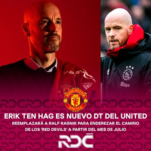 Los diablos rojos de Manchester contrataron a Erik Ten Hag para que se haga cargo del equipo desde el mes de julio y hasta 2025. El entrenador neerlandés dejará el Ajax, club donde consiguió cinco títulos locales desde 2018, una semifinal de Champions, logrando 156 victorias, 25 empates, 29 derrotas 🔥