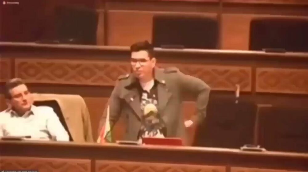 De esta manera, el diputado suplente de Creemos, Caleb Villarroel, interpretó el tema “Culpable o no” de Luis Miguel, el cual fue dedicado a su colega de Movimiento Al Socialismo (MAS), Omar Yujra. Video: RRSS https://t.co/1AW75MtqLf
