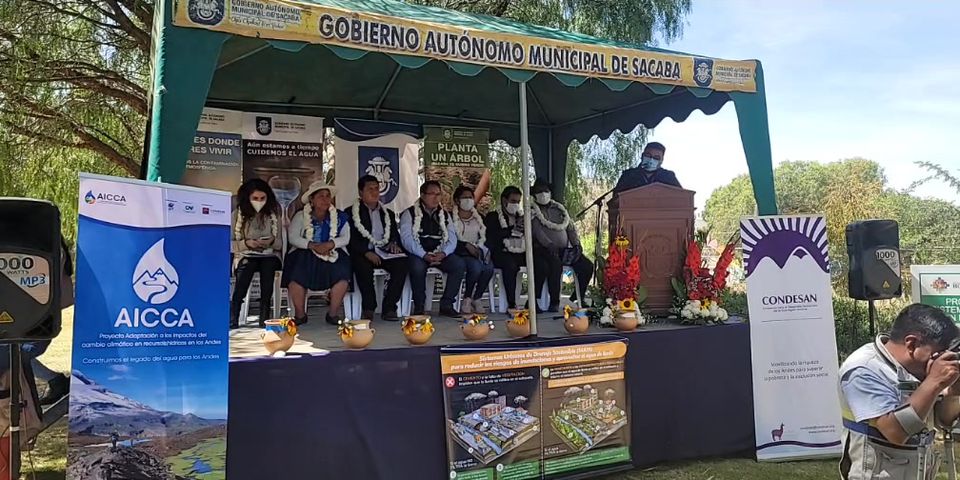 Inauguración del Proyecto Piloto «Construcción de Sistemas Urbanos de Drenaje Sostenible en el Parque Prehistórico – #Sacaba» – piedra fundamental.