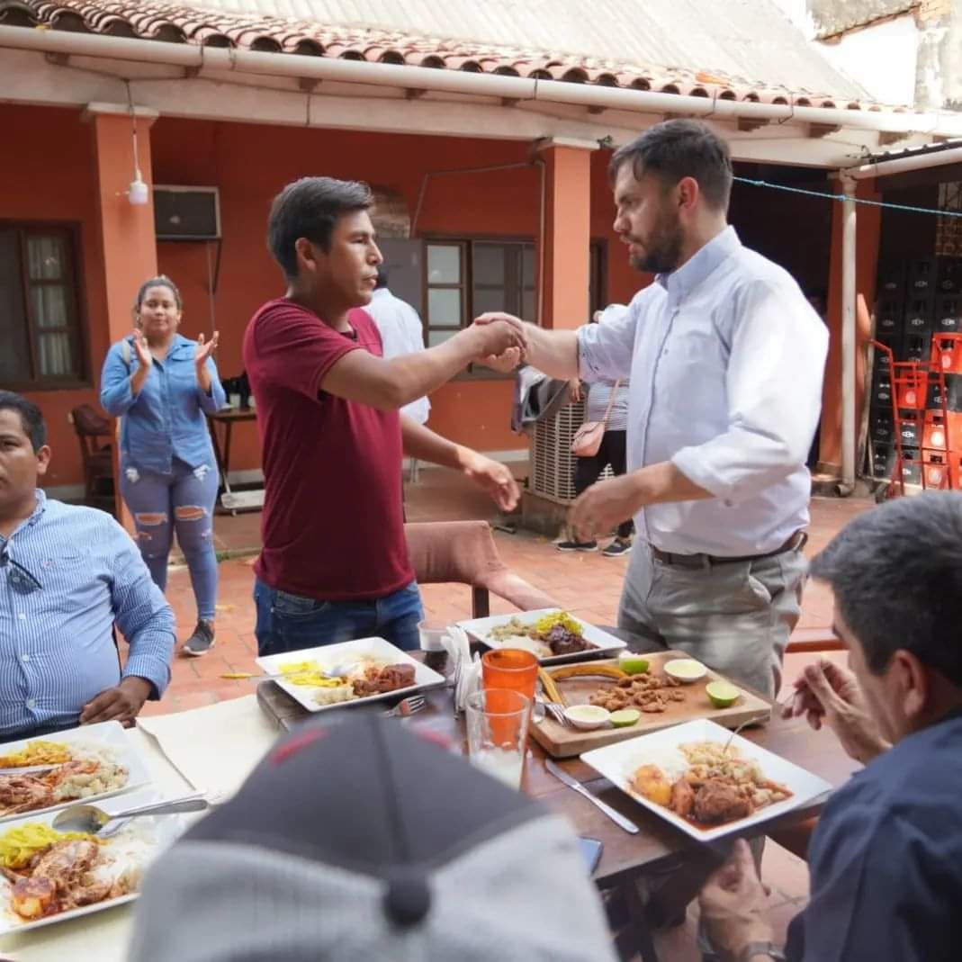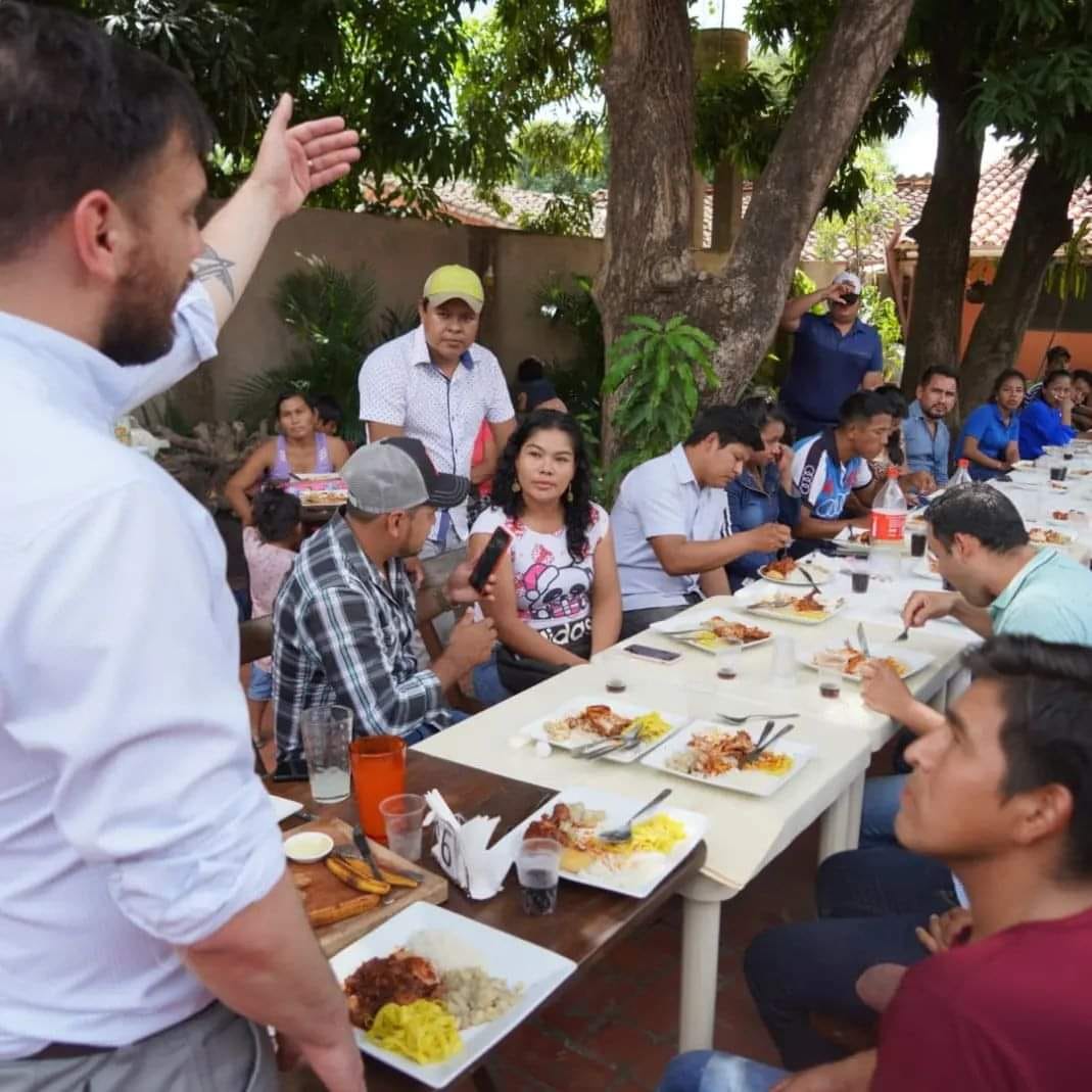 El ministro de Gobierno, Eduardo del Castillo, se reunió este viernes con las juventudes de Beni, con quienes compartió un plato de chicharrón de lagarto a la hora del almuerzo.
