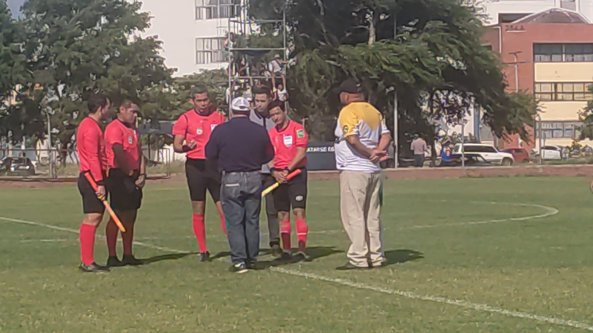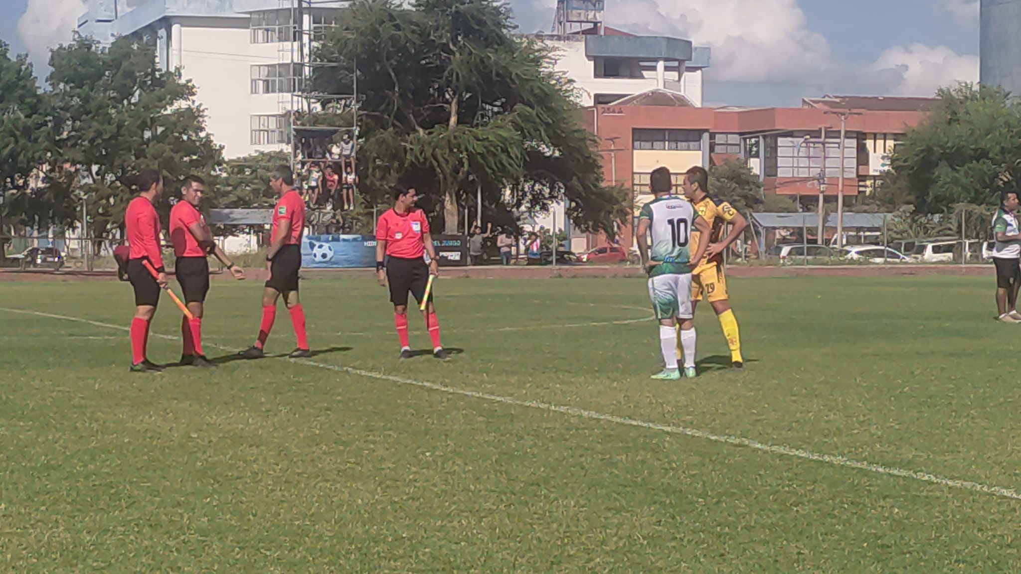 Destroyers vs 24 De Septiembre están en cancha junto a los árbitros a la cabeza de Juan Nelio García, el juez principal exige presencia de la policía