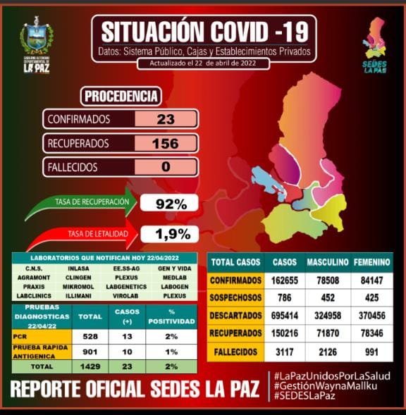 🔵 #ANF | #Salud Este viernes, en el departamento de #LaPaz se registró 23 nuevos contagios y 156 recuperados. https://t.co/YeRnukncyF