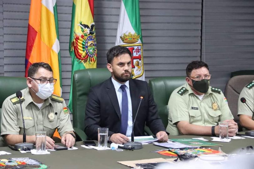 “Comunicamos al pueblo de Bolivia, que concluyó la audiencia de medidas cautelares de los 8 efectivos policiales involucrados en la desaparición de 800 kilogramos de cocaína. Se dispuso detención de todos ellos en Palmasola, informó el Ministro de Gobierno, Carlos Eduardo del Castillo.
