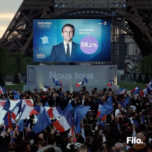 🗳🇫🇷 Emmanuel Macron fue reelegido presidente de #Francia Emmanuel Macron es reelegido este domingo presidente de #Francia con el 58,2% de los votos, frente a Marine Le Pen.