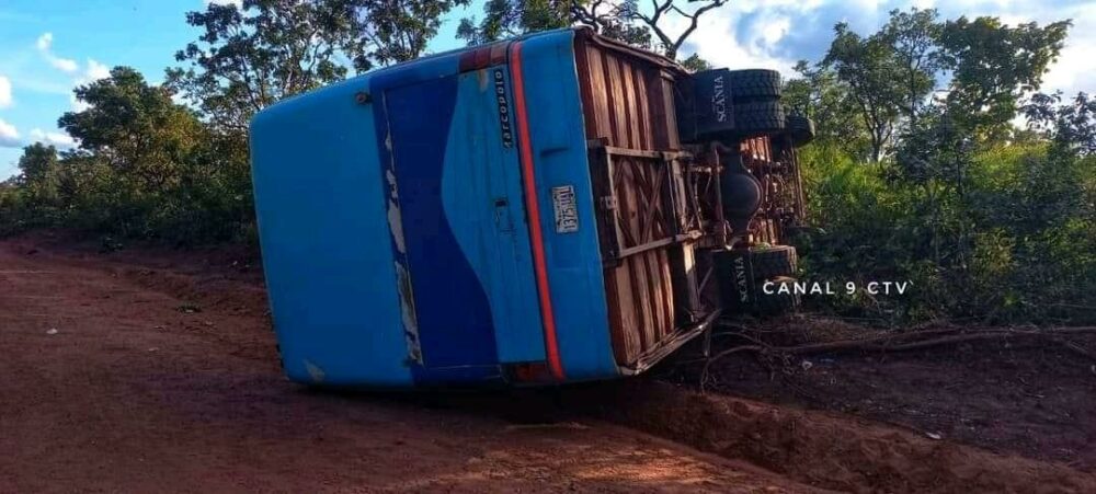 🔵#ANF | #Seguridad Una flota en la que se transportaban los integrantes de la Orquesta y Coro Municipal de San Ignacio de Velasco volcó este sábado. El hecho ocurrió en el tramo Santa Ana-San Rafael.