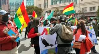 Operadores de turismo, agencias de viajes, transporte turístico entre otros sectores se movilizan en la ciudad de La Paz en rechazo del DS 4574 y en exigencia de políticas de reactivacion económica y promoción al turismo.