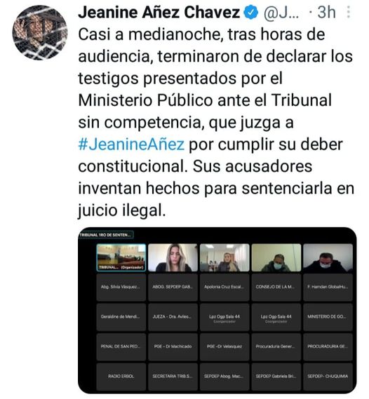 A través de las redes sociales de Añez señalan que testigos del Ministerio Público terminaron de declarar casi a medianoche