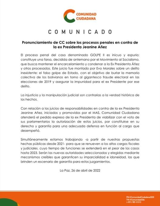Pronunciamiento de #CC sobre procesos penales contra Añez