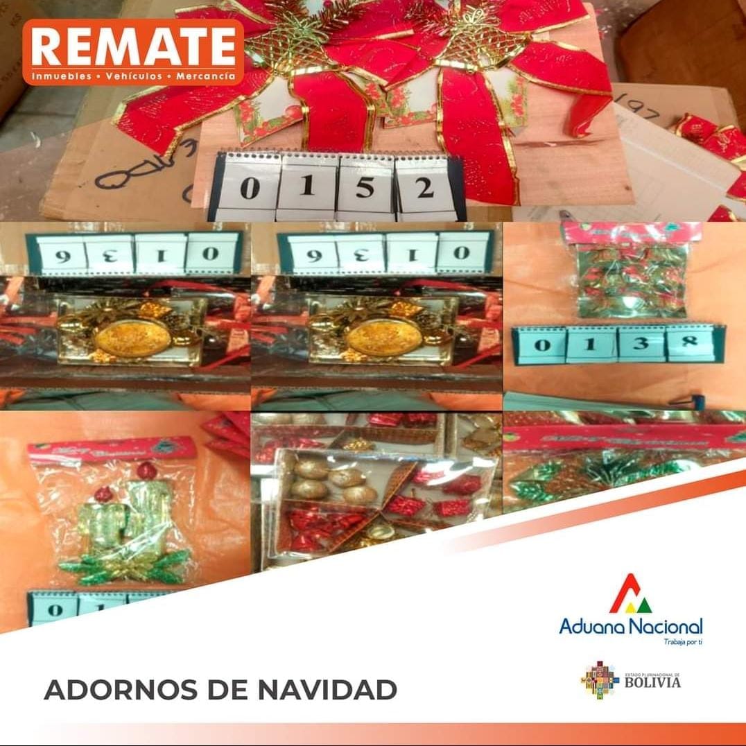 Estos juguetes, accesorios de vestir y adornos de navidad fueron embargados por la institución y su primer remate inicia con un precio base de 311.048 bolivianos.