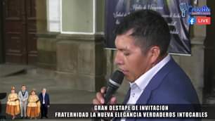 Gran destape de invitacion, evento de la gran Fraternidad La Nueva Elegancia Verdaderos Intocables, en el frontis del Templo san Idelfonso de Quillacollo.