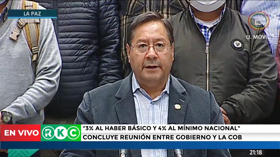 El presidente del Estado, Lucho Arce: “Se acordó que el incremento del haber básico para esta gestión 2022 sea del 3% y del salario mínimo nacional sea del 4%”.