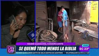 Mario Morato y Naidé Camacho, comerciantes en el Alto San Pedro. Su negocio fue destruido por el incendio y en medio de las cenizas encontraron una biblia intacta. Los comerciantes tomaron este hecho como un mensaje de que deben seguir adelante y no perder la fe.