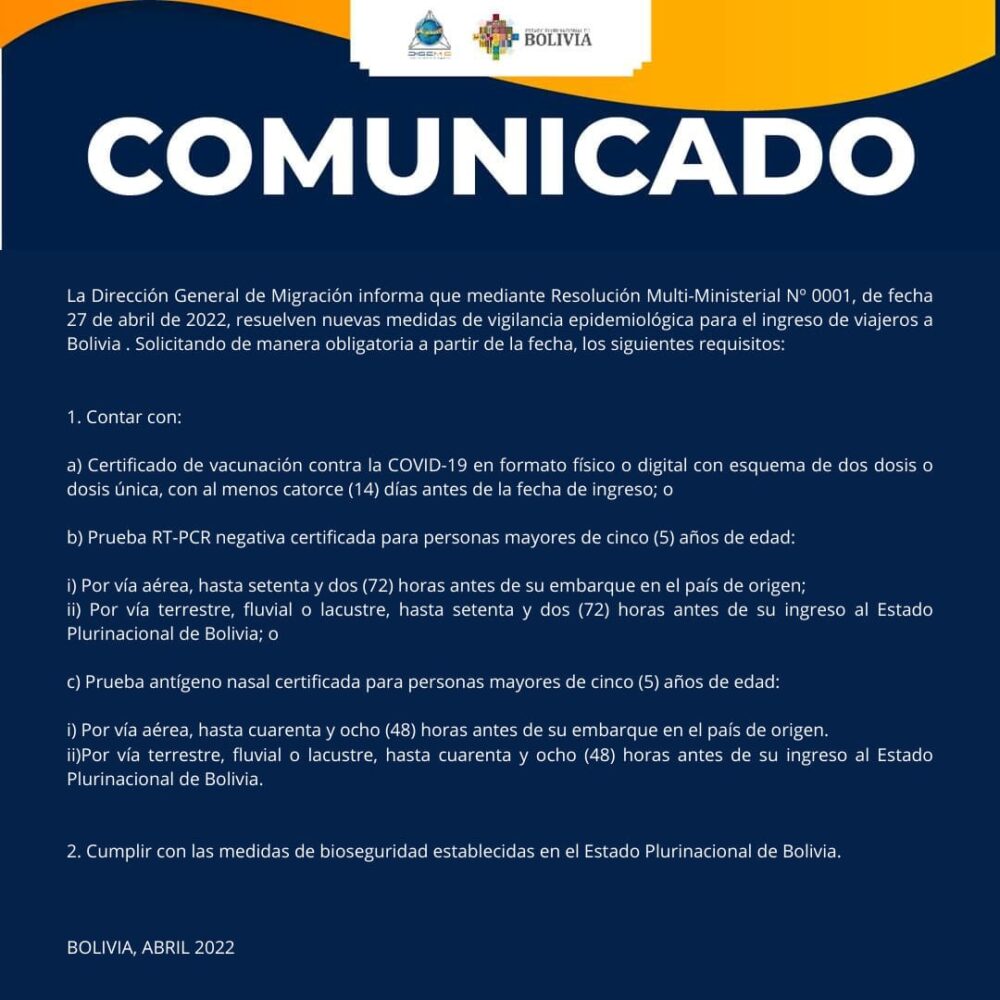 馃數 #ANF | #Sociedad La Direcci贸n General de Migraci贸n comunica que, mediante Resoluci贸n Multi-Ministerial N掳0001, se dispuso nuevas medidas de vigilancia epidemiol贸gica para el ingreso de viajeros a #Bolivia. pic.twitter.com/j4gMjsEMgE