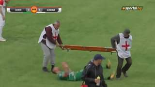 El jugador Yordan Apostolov, que juega en la liga de Bulgaria, decidió tirarse de la camilla, para poder hacer un poco maa de tiempo. 😅😅 Video : Fútbol Búlgaro.