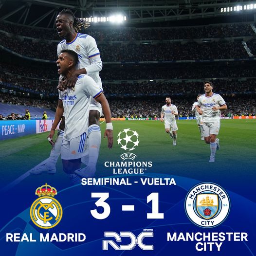 El cuadro español logró vencer al Manchester City en el alargue por 3-1 y aseguró su participación en la final de la Champions League. Mahrez anotó para los de Guardiola, mientras que Rodrygo (2) y Benzema hicieron posible la remontada. El 28 de mayo será la gran cita en donde el Liverpool y Real Madrid verán cuál es el mejor equipo de Europa.