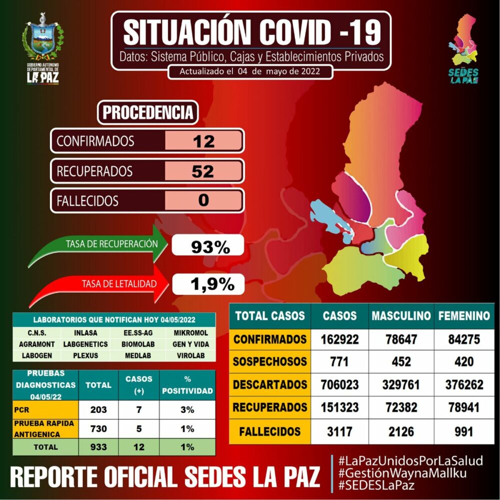 | #Salud El Sedes de #LaPaz registra este miércoles 12 nuevos contagios y …