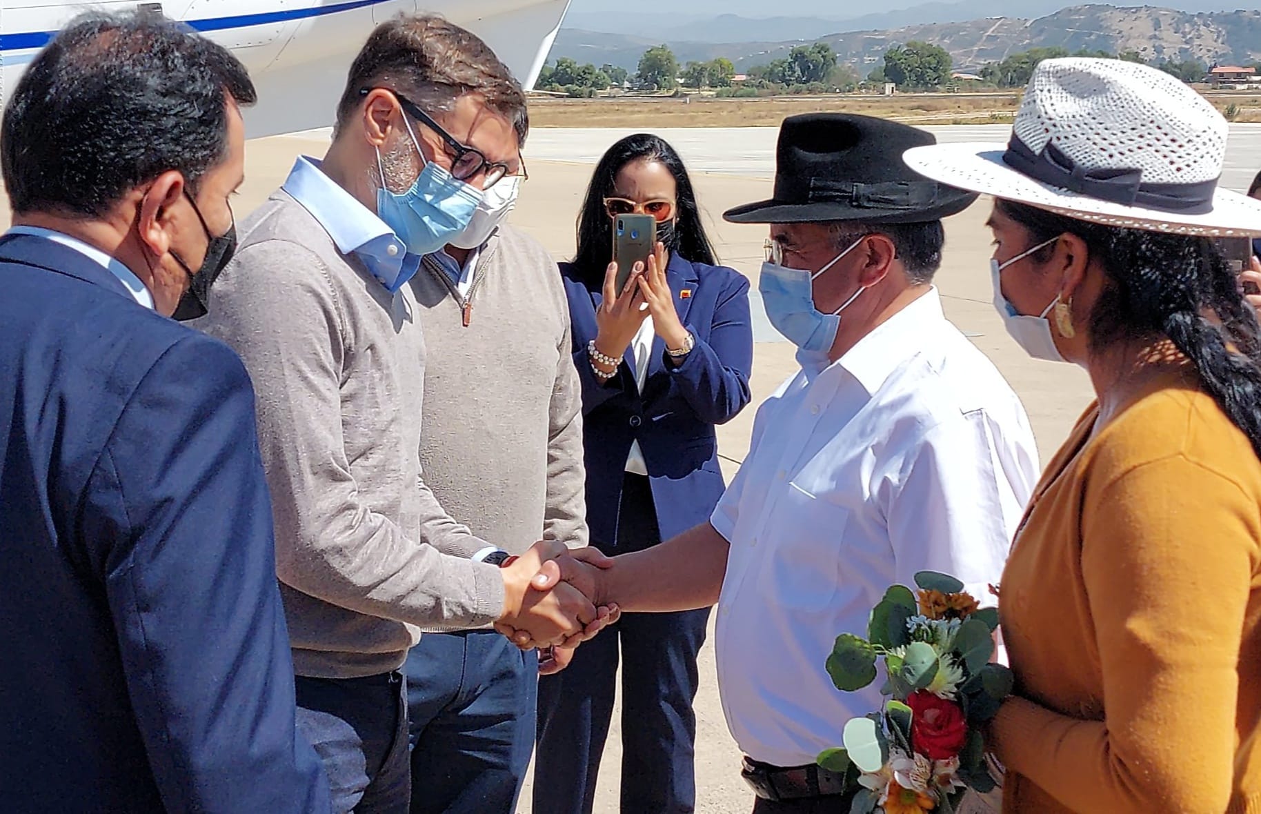 Gobernador Humberto Sánchez recibió al Canciller de la República Bolivariana de #Venezuela, Félix Ramón Plasencía y el Embajador Cesar Trómpiz en el aeropuerto Jorge Wilstermann para luego participar de una reunión para fortalecer en el ambito político, económico y social entre #Venezuela y #Bolivia.