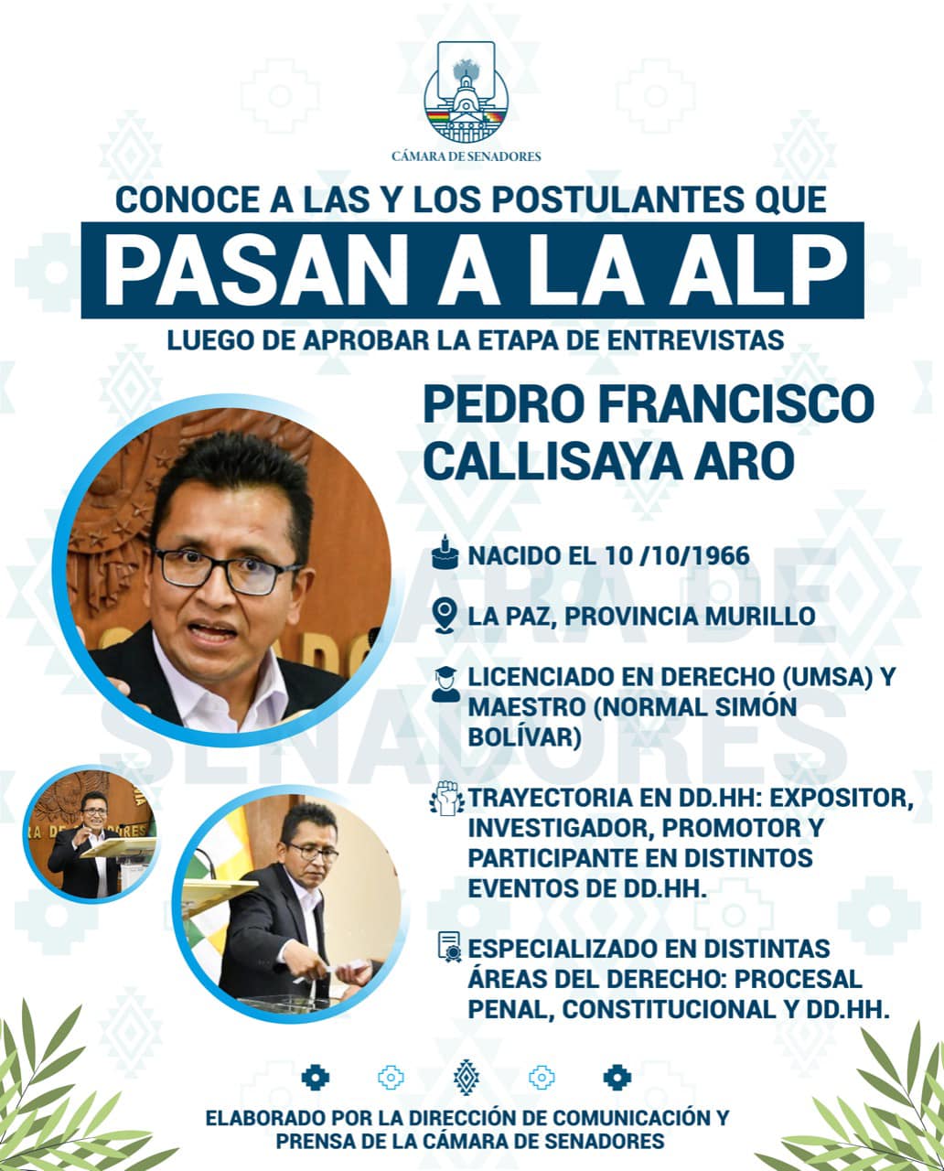 Se trata de Pedro Francisco Callisaya Aro que tuvo 65 votos en la primera votación y 82 en la segunda.