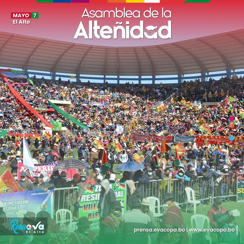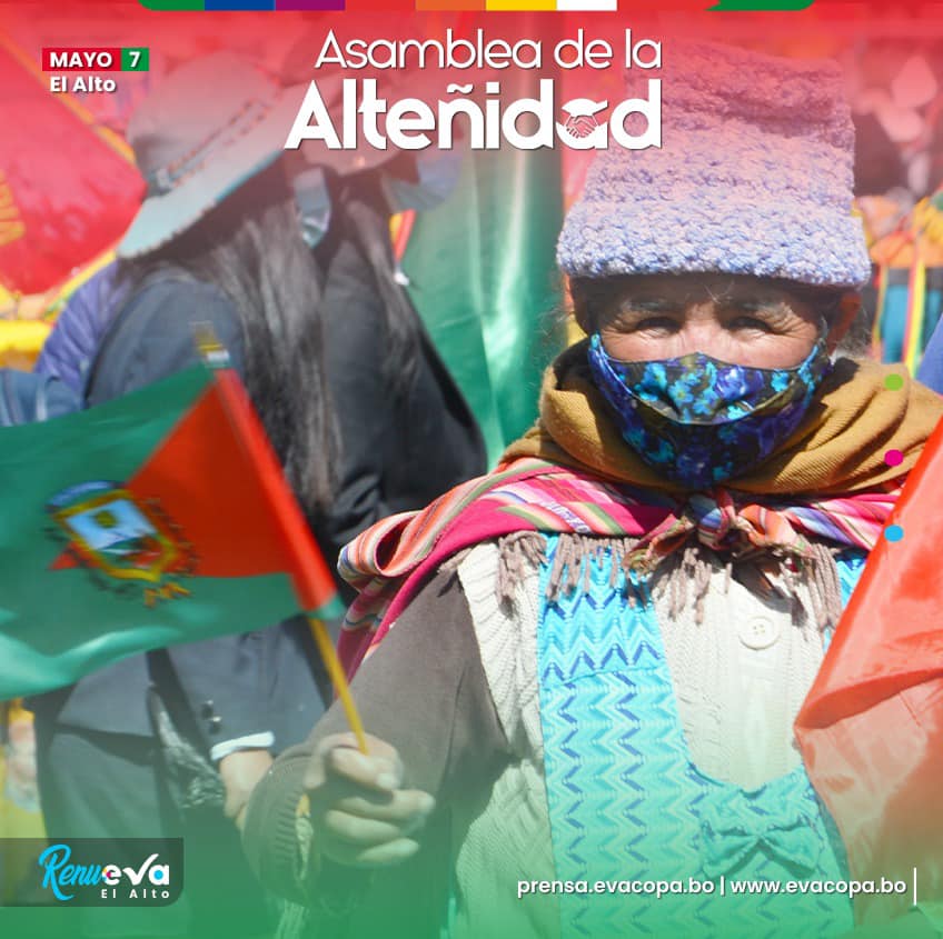 “Destaco la participación activa y democrática de los vecinos que en una histórica y masiva ‘Asamblea de la Alteñidad’ reafirmaron la unidad, identidad revolucionaria, defensa de límites y participación efectiva de la población en el Censo. “El Alto de pie, nunca de rodillas”, twitteó la Alcaldesa de El Alto, Eva Copa.