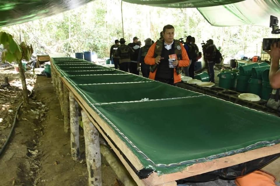 Las autoridades competentes aún realizan el pesado de la cantidad de cocaína decomisada en estas infraestructuras que fueron destruidas acorde con los procedimientos que señala la normativa vigente.