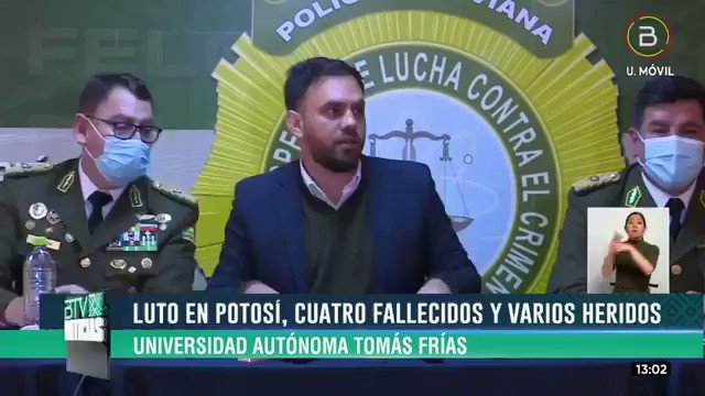 🔵 #ANF | Del Castillo confirmó el fallecimiento de una cuarta persona, tras detonar una bomba de gas en una asamblea de la Universidad Autónoma Tomás Frías de #Potosí. «Ya está identificado un sospechoso que habría arrojado la sustancia química en el lugar», dijo. (Vía BTV) https://t.co/pIFNTUfySV
