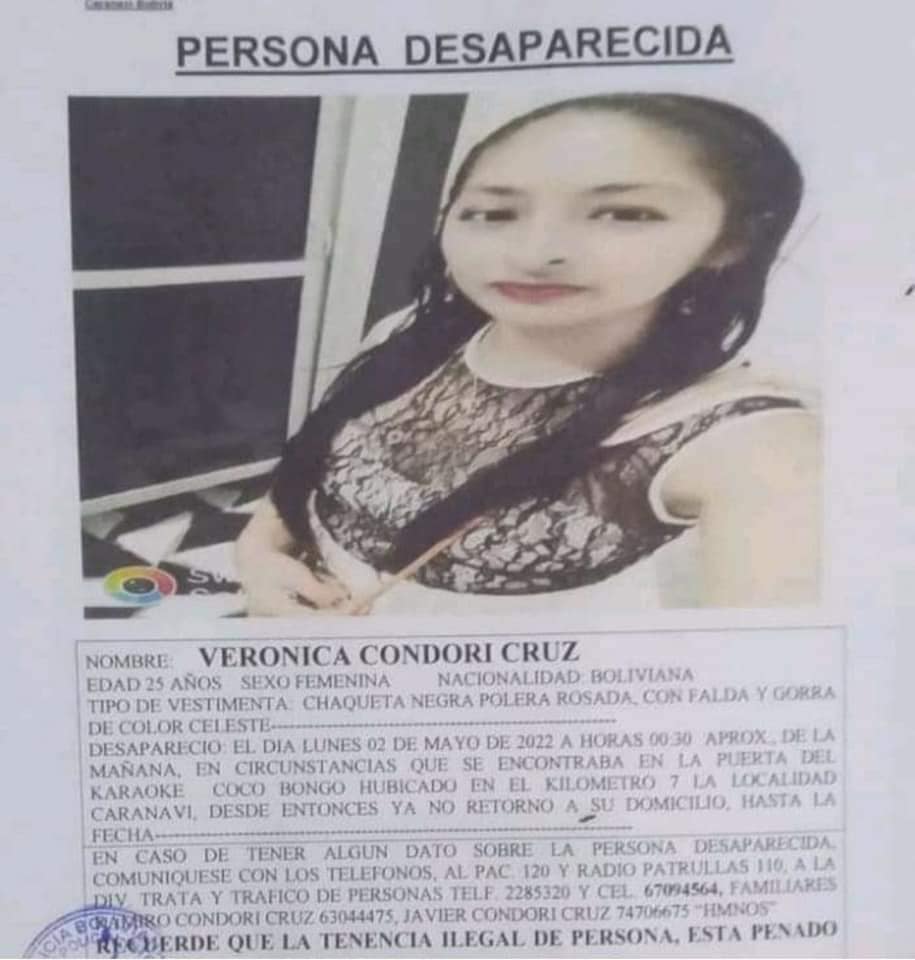 El ministro de Gobierno, Eduardo del Castillo, confirmó que la joven Verónica Condori Cruz, quien desapareció de Caranavi hace 8 días fue hallada muerta este martes. En las próximas horas dará a conocer mayores detalles e implicados.