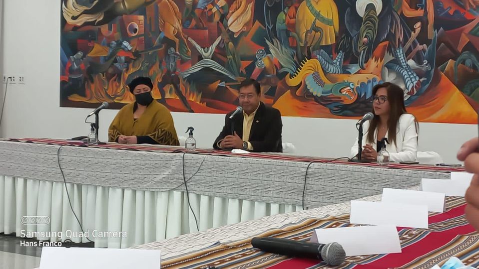 El presidente Luis Arce en una reunión con periodistas que se realizó en Casa Grande, destacó el rol social de los comunicadores de informar a la población pese a las adversidades. Considera que hoy en el mundo la información determina la vida de las personas y hay que tener mucho cuidado de cómo se informa.