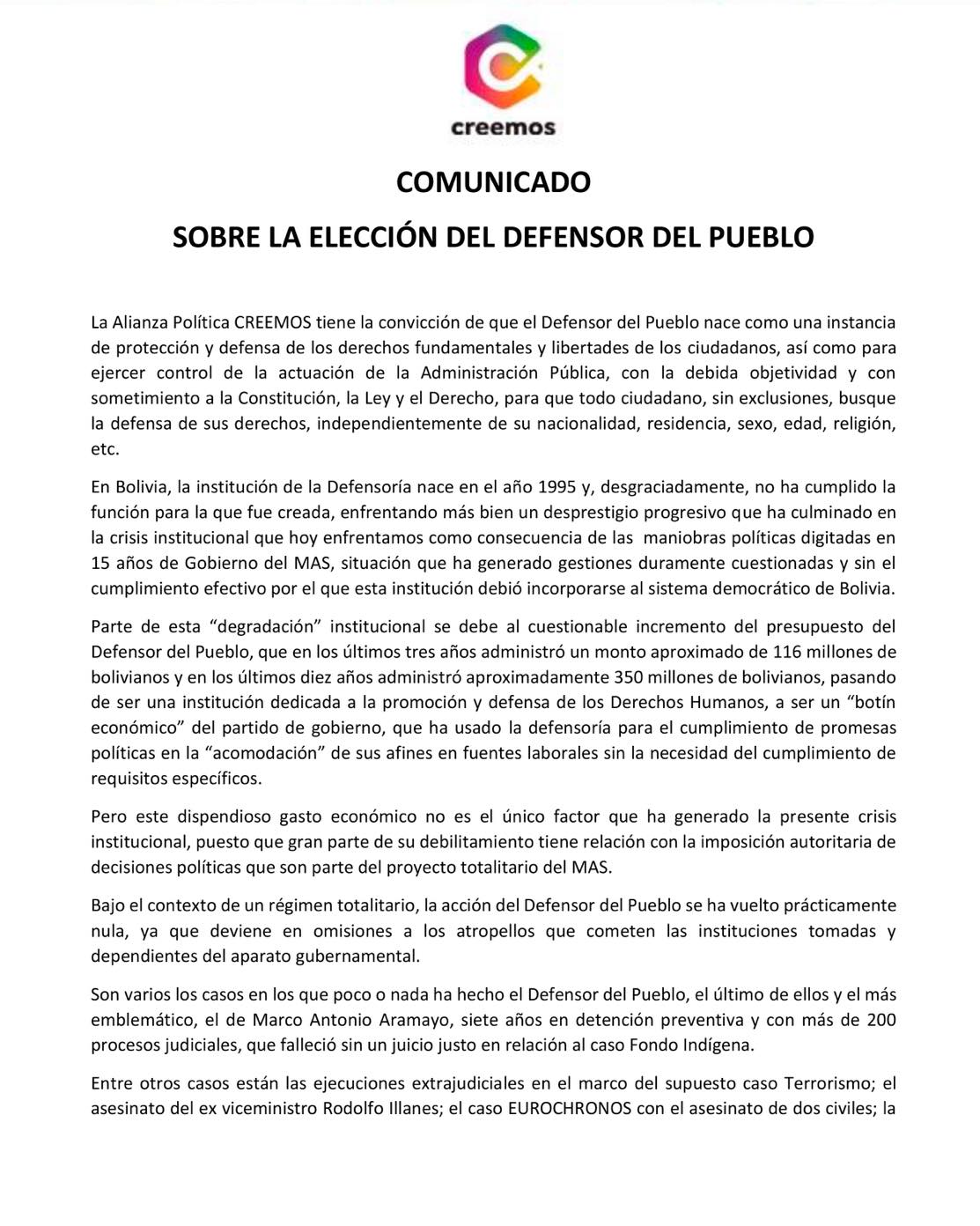 #Creemos no respaldará ni brindará legitimidad al proceso de elección del #DefensorDelPueblo 👇