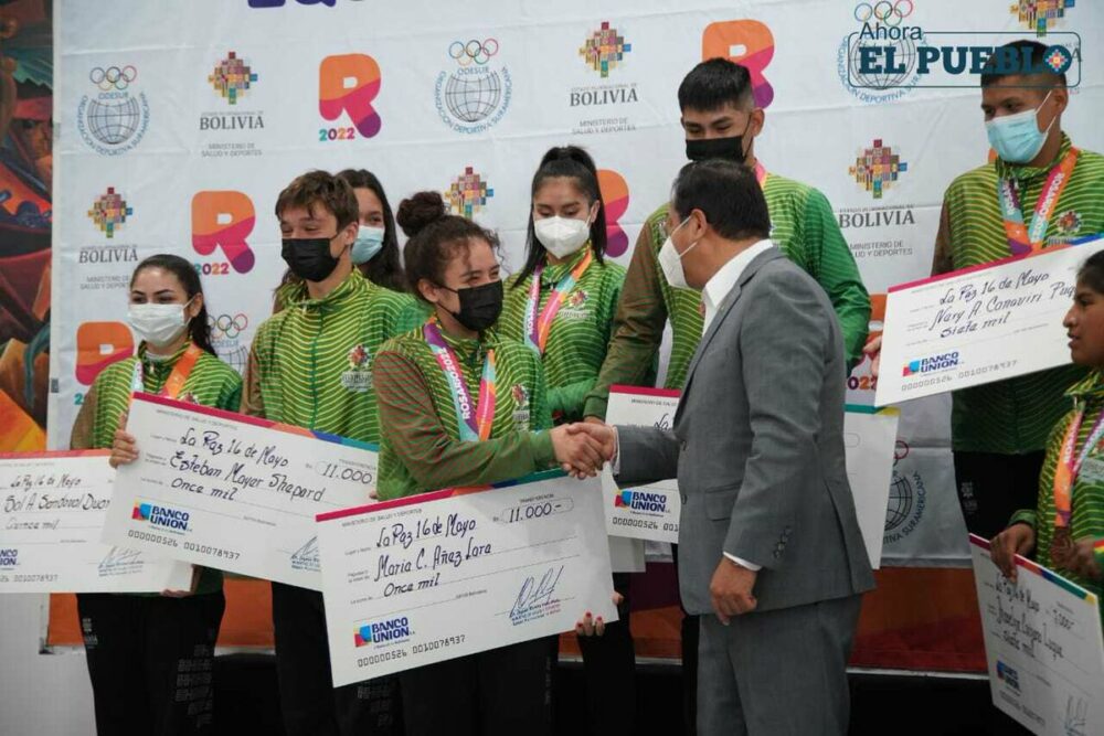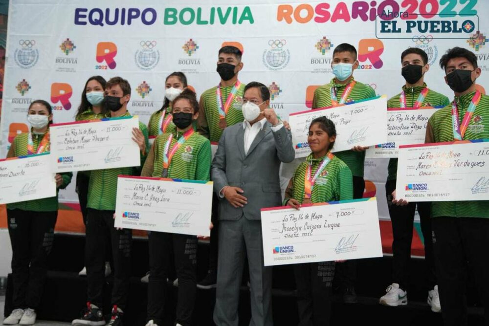 🔵 #ANF | El presidente @LuchoXBolivia entregó hoy incentivos económicos a las y los medallistas bolivianos que participaron en los III Juegos Suramericanos de la Juventud #Rosario2022. (Fotos: Ahora el Pueblo) pic.twitter.com/l6TOEPPrm8