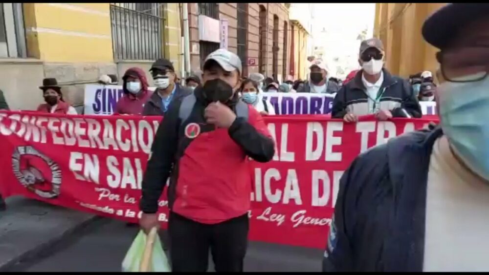 🔵 #ANF | Trabajadores en salud pública protestan en puertas de la gobernación de #LaPaz. Denuncian despidos injustificados y anuncian la instalación de un piquete de huelga de hambre en el Hospital de Clínicas. https://t.co/jcF8xaSMty
