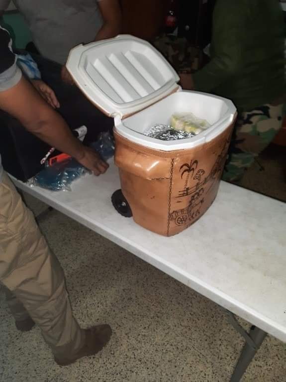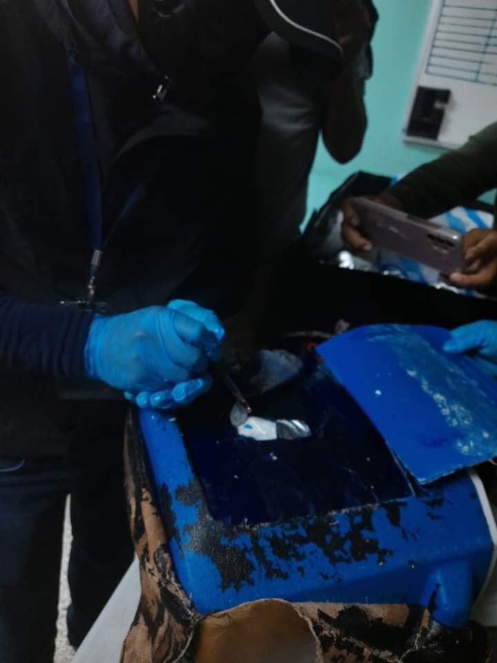 La droga secuestrada se encontraba hábilmente camuflada, en el exterior del termo habiendo sido alterado la estructura del mismo, donde se observó una sustancia con características a cocaína, se procedió a realizar la prueba de campo Narco Test, dando positivo para cocaína. Pero en el interior del termo contenía salteñas y otros alimentos para no ser identificado fácilmente.