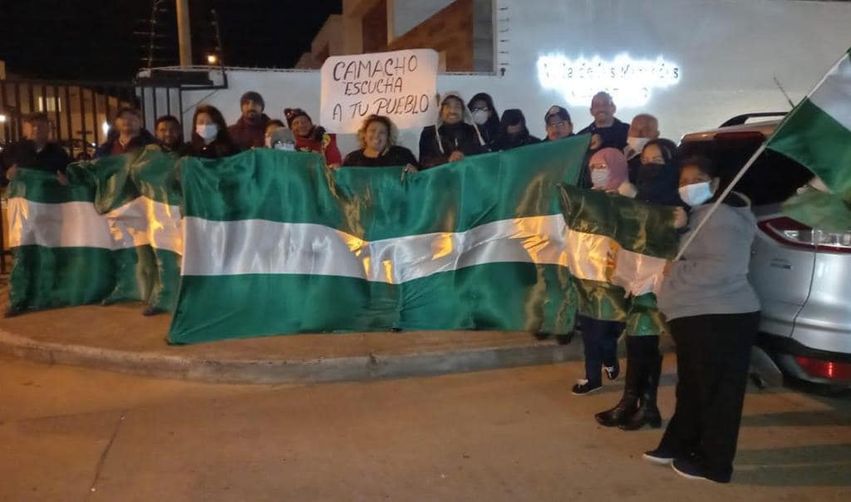 Militantes de Creemos bloquean vivienda de Camacho, piden fuentes de trabajo