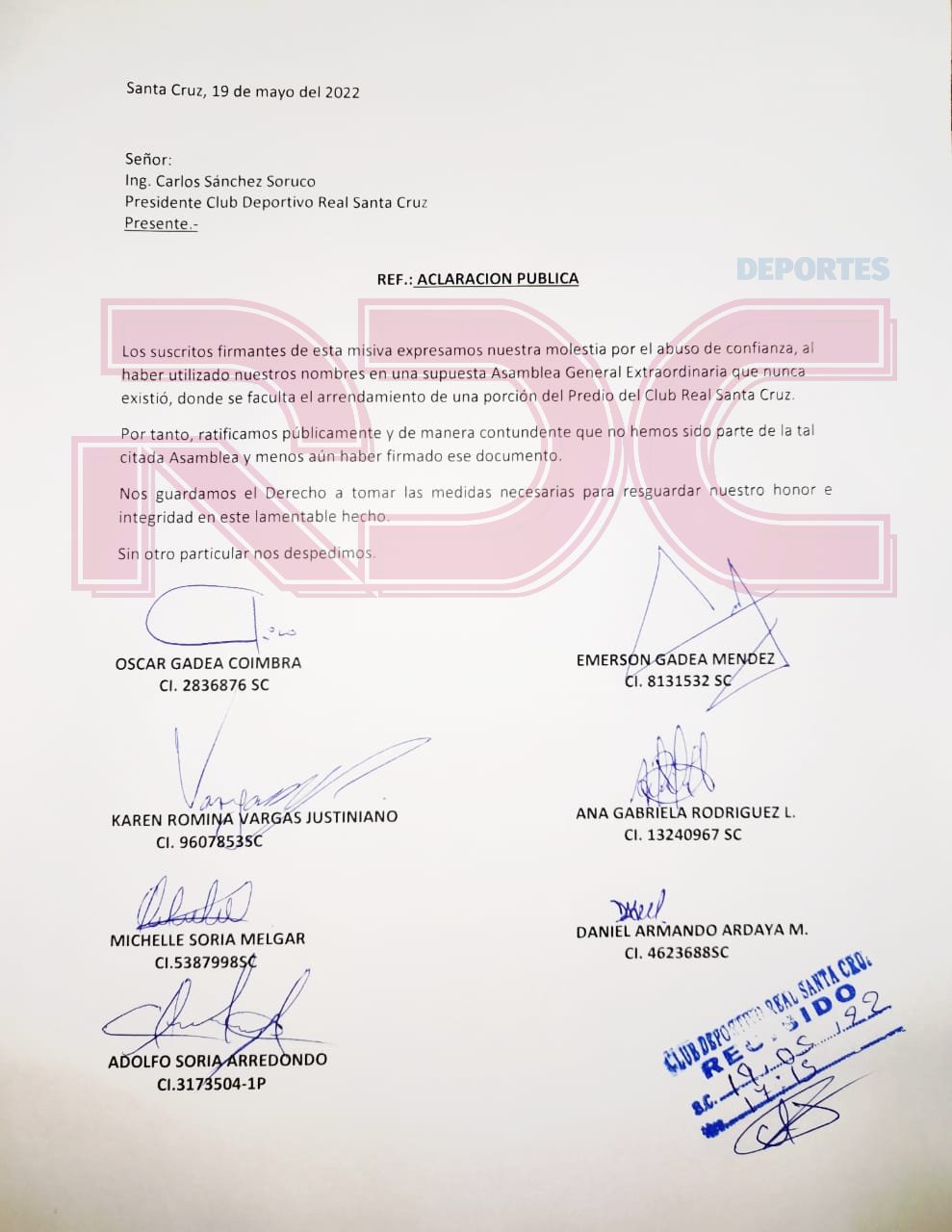 📌El documento se habría celebrado en una asamblea que otros directivos niegan haberla llevado a cabo, o haber participado en la firma de la autorización de alquiler.