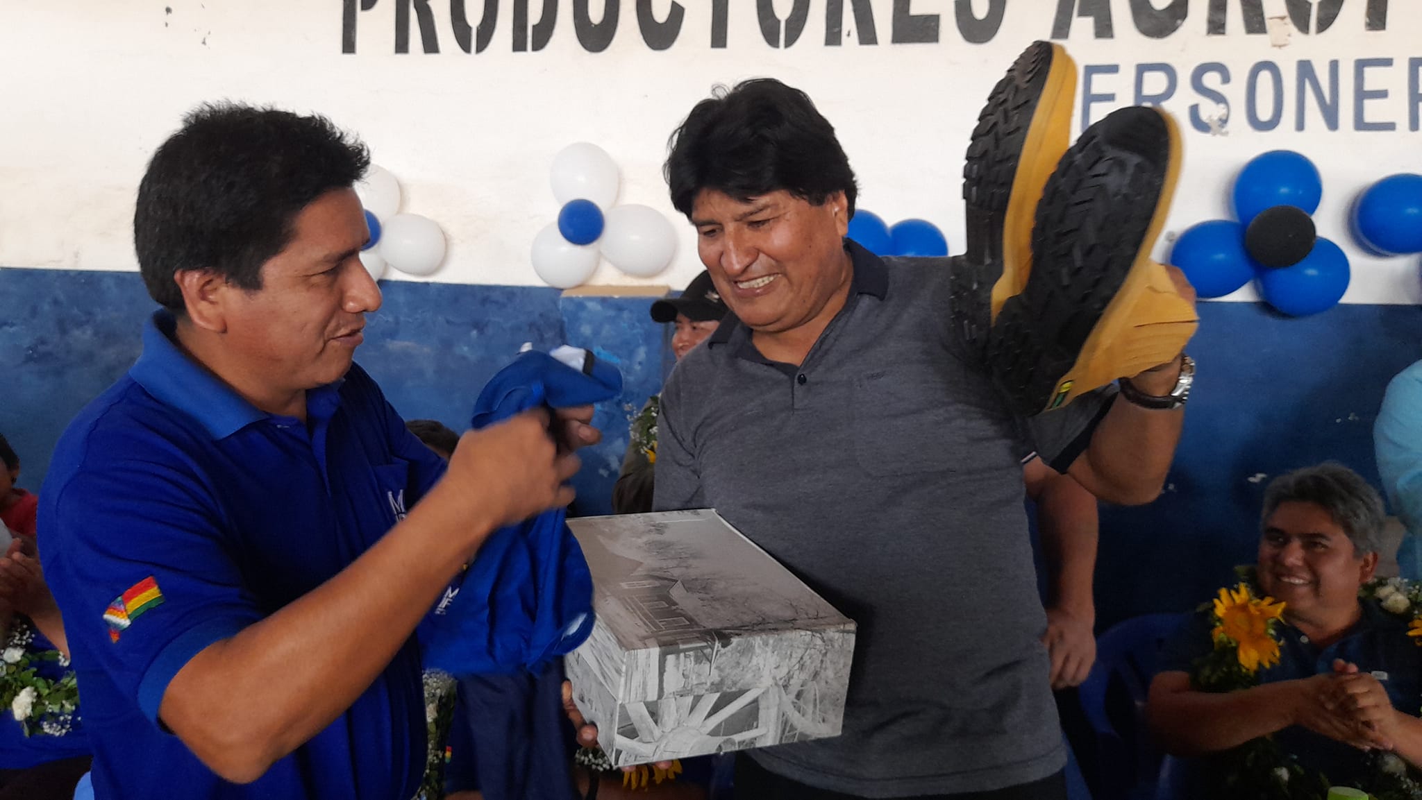 Evo Morales recibe obsequios de cariño en San Julian.
