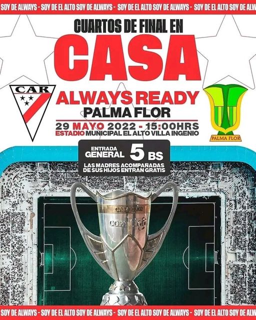 #AlwaysReady sigue con la idea de que la gente llene el estadio, y sigue con los precios de 5 bs, y las madres que vayan con su hijos entran gratis