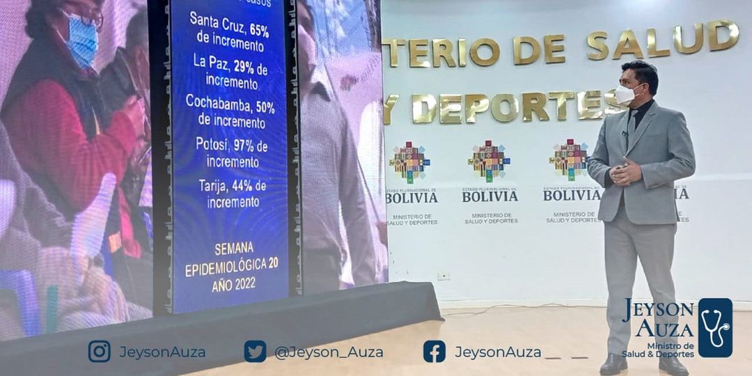 El ministro de Salud, Jeyson Auza, informó que en la última semana se registró un 50% de incremento de casos Covid-19 a nivel nacional. «En 5 departamentos se tuvo un aumento de casos positivos: Santa Cruz, La Paz, Cochabamba, Tarija y Potosí; mientras que en Oruro, Pando, Beni y Chuquisaca se registraron descensos», señaló.