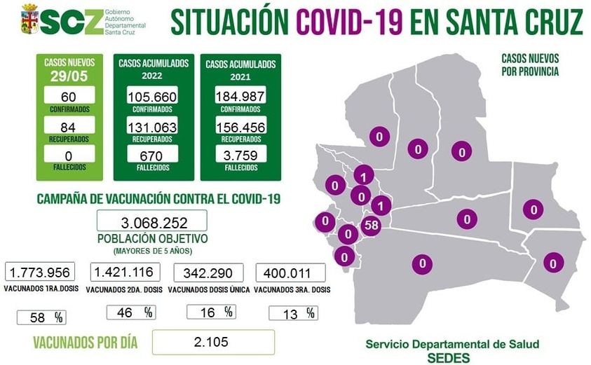 #SCZ: Este domingo se reportaron 60 nuevos contagios, 84 recuperados y 0 fallecidos