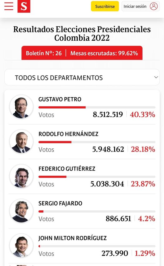 El expresidente Jorge Quiroga felicitó a Colombia por una jornada electoral pacífica y un resultado rápido y confiable. Señaló que el 19 de junio América Latina decide su futuro. «Será: Retro con Petro rumbo al Socialismo XXI, o Pa ‘elante con libertad y el Ingeniero Rodolfo Hernandez», señaló.