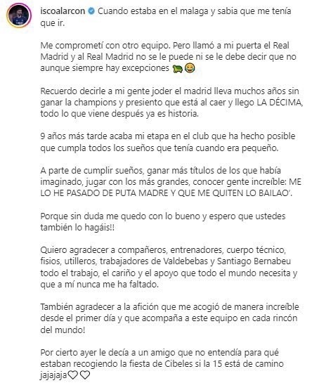 Isco se despide del Real Madrid dejándole un recadito a Mbappe.