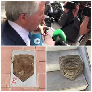 3 horas después, algunos hinchas del Atlético de Madrid fueron y quitaron en el Paseo de Leyendas del Metropolitano, la placa