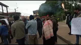 Pobladores de diferentes comunidades de Cotoca, protestan fuera de la alcaldía esperando atención de las autoridades municipales a demandas de educación, caminos y servicios básicos.