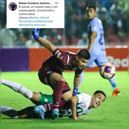 🔥 Ruben Cordano, arquero de #Bolivar, en sus redes sociales.🔥 ⚽ El jueves en nuestra casa y con nuestra gente, contra todo y contra todos.