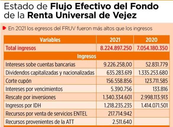 En 2021, el patrimonio del Fondo de la Renta Universal de Vejez (FRUV) se desplomó en 66% y sumó 1.307,9 millones de bolivianos, según revela el informe del auditor independiente Santa Fe Associates International (SFAI) para la Gestora de la Seguridad Social de Largo Plazo.