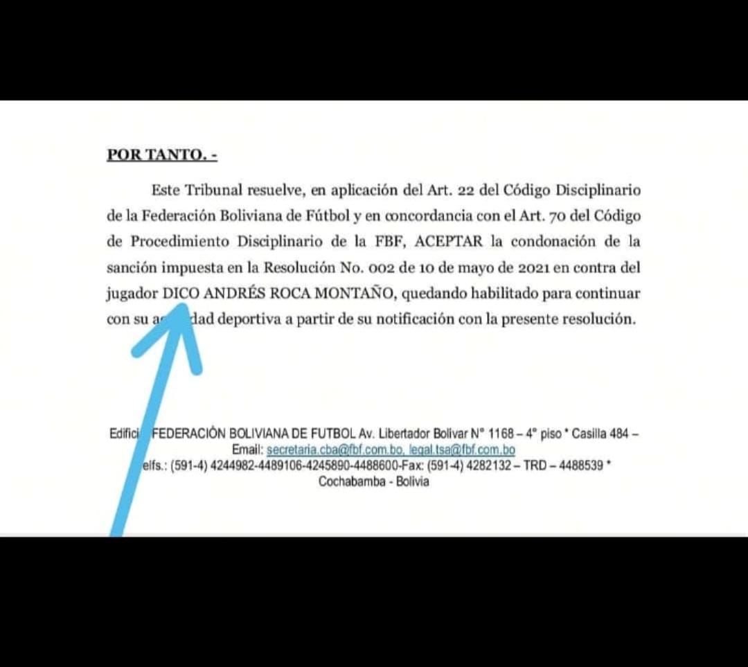 El jugador Dico Andrés Roca Montaño ya se encuentra habilitado para poder jugar en la Divi…