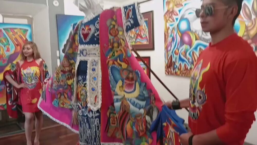 #LaPaz | Este es el manto que lucirá el Tata del Señor Jesús del Gran Poder donde se reflejan unas 14 danzas de la festividad prevista para el 11 de junio. La vestimenta fue realizada por el artista Roberto Mamani Mamani. Video: Mamani Mamani pic.twitter.com/ao1j0PPugA