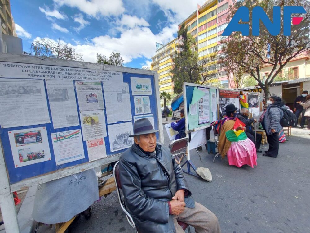 🔵 #ANF | #LaPaz Víctimas de las dictaduras, que hacen vigilia hace 10 años en el Prado paceño, bloquean el carril de subida en demanda de la incorporación al proyecto de Ley 221/2021-2022 que prevé el resarcimiento con Bs. 99, 9 millones. pic.twitter.com/xsqVIXdndc
