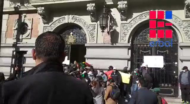 🔵 #ANF | Un grupo de personas protesta en el Palacio Consistorial en demanda de reincorporación a sus fuentes laborales, denuncian despido masivo en la Guardia Municipal de #LaPaz. (Vía Erbol) pic.twitter.com/KUDrKt8KJT