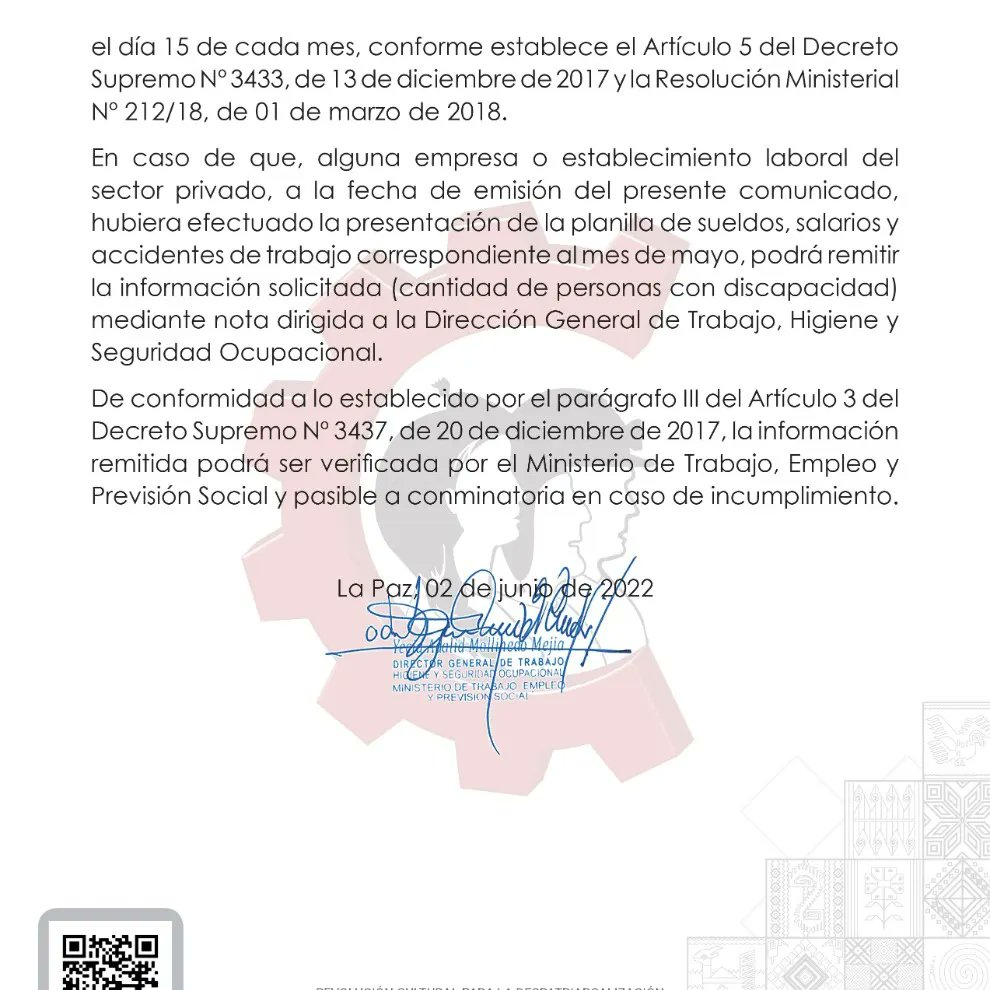 🔵 #ANF | El Ministerio de Trabajo, mediante un comunicado, informa a las empresas y establecimientos laborales del sector privado su obligación de reportar en sus planillas de mayo de 2022 la cantidad de trabajadores que sean personas con discapacidad. pic.twitter.com/sqzVdDrIg3