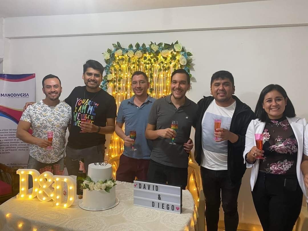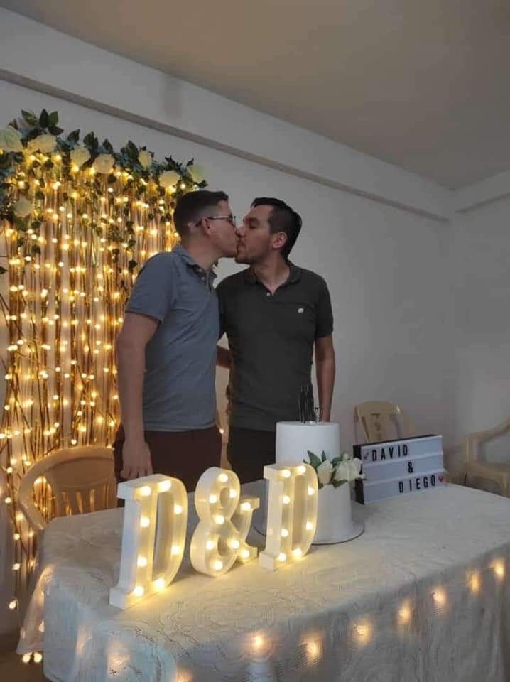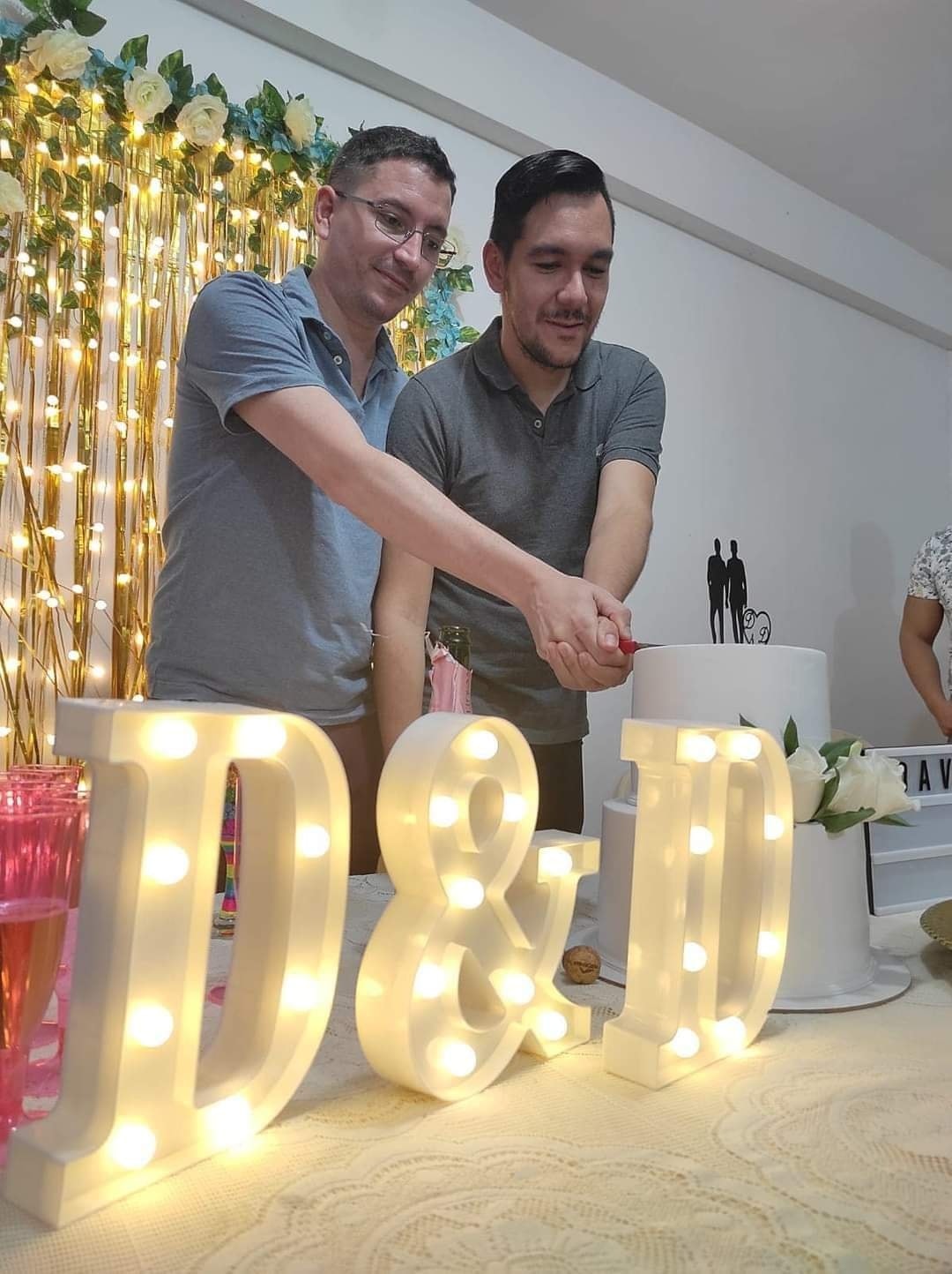 Diego Figueroa (33 años) y David Corchero (37) son la primera pareja del mismo género que inscribe su unión libre en Santa Cruz. Diego es ingeniero, mientras que David es residente de medicina. Hubo festejo simbólico, con torta incluida.