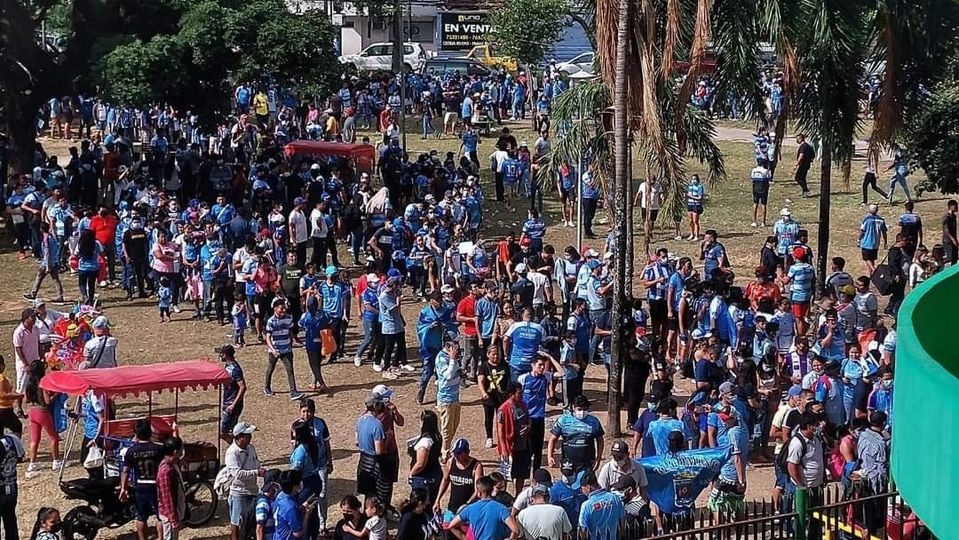 Hinchas del Club Blooming llegan al Tahuichi, a las 3 de la tarde comienza el encuentro frente a Bolivar.